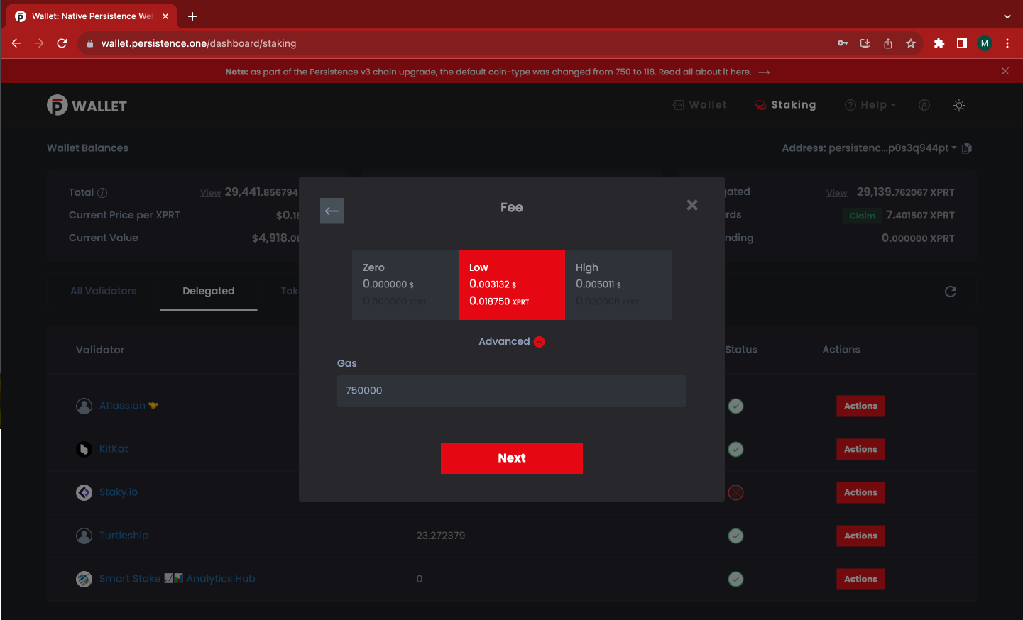 This step will migrate all the available tokens from 750 coin-type address to 118 coin-type address. If you have staked/delegated tokens in your wallet, we'll migrate them in the Step 3.